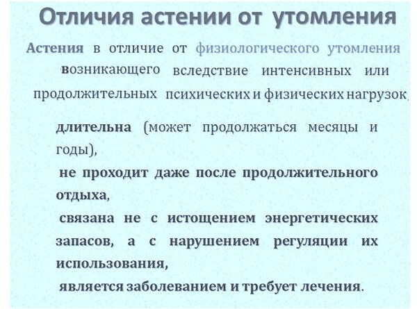 Астения (греч. asthenia - бессилие, слабость) - снижение или утрата способности к продолжительному физическому, умственному напряжению, состояние, характеризующееся слабостью, повышенной утомляемостью, эмоциональной лабильностью, гиперстезией, нарушениями сна.