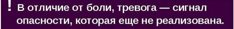 Появление тревоги, непропорционально высокой по отношению к существующей опасности или возникающей в ситуации, где внешней опасности нет вообще, ключевой признак патологической тревоги.