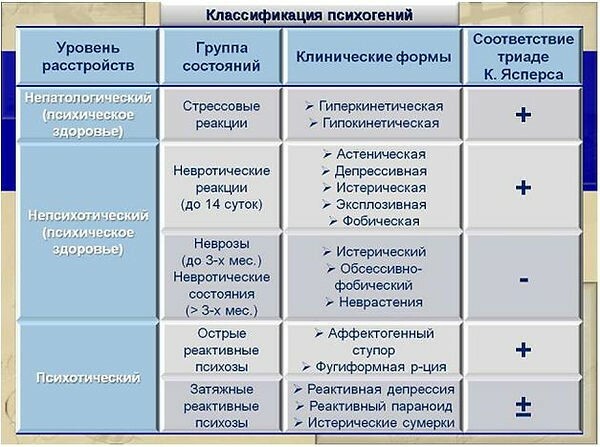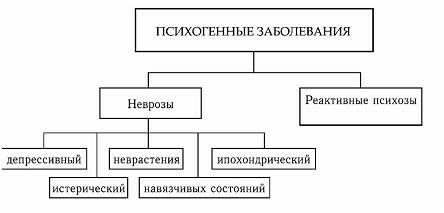 Психогенные состояния, на уровне расстройств психической сферы (без учета психосоматических нарушений), можно разделить на относительно легкие – неврозы, и более тяжелые – реактивные психозы.